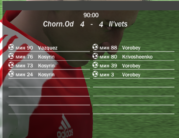 | 8 тур VasaDw(Іллічівець)5-0KLOD(Зоря) Vorobey-2 Krivoseenko-2 Oberemko